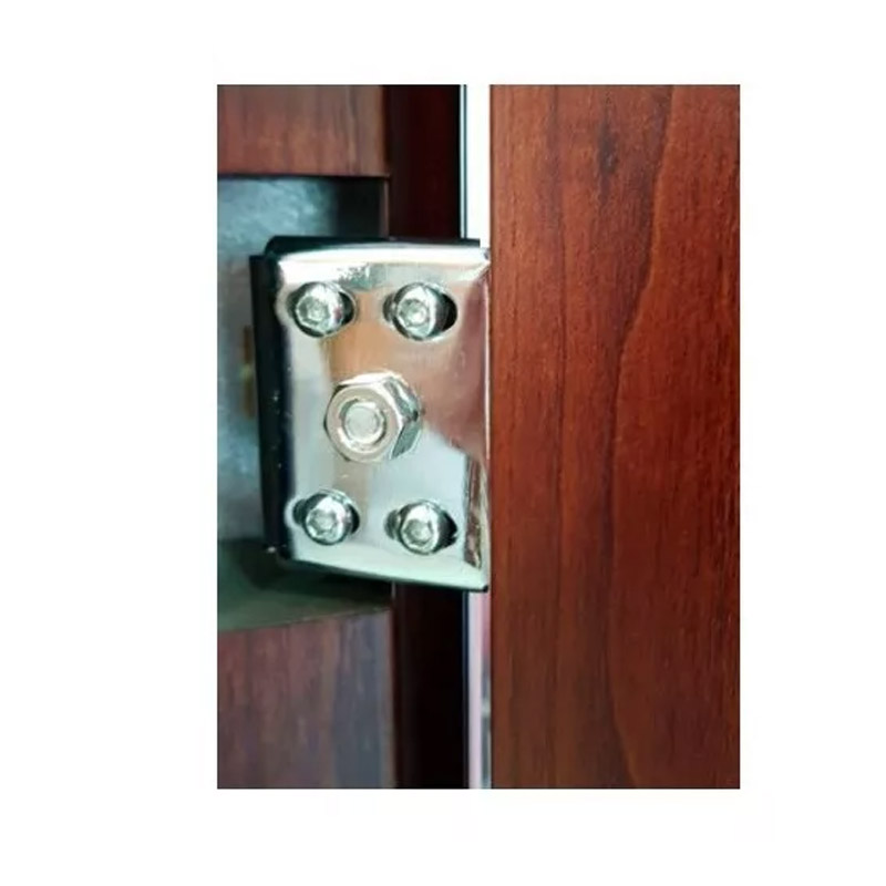 4 Bisagras “antibarreta” de acero inoxidable embutida en marco con autorregulación.